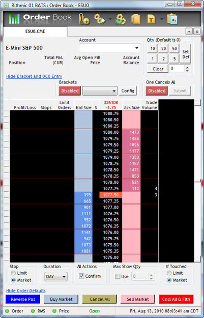 R | Trader Pro™ is R | Trader™ with charts and a real-time interface to and from Microsoft Office Excel. In addition to all the functionality of R | Trader™, with R | Trader Pro™ you can view about 100 studies and stream them in real-time into Microsoft Office Excel spreadsheets. With the power of Excel, you may develop your own indicators and, using Rithmic’s two way real-time interface, you may configure trades to be sent back into R | Trade Execution Platform™ through R | Trader Pro™, automatically or with the click of a button.